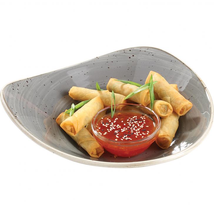 Dārzeņu veltnīši mīklā ar saldo čili mērci